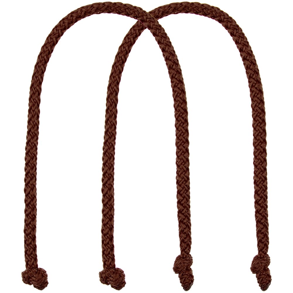 2 ручки из плетеного шнура для подарочного пакета. Ручки закрепляются в отверстиях с помощью узелков. Фактическая длина ручек на замену определяется по исходному размеру ручек в изделии, но составляет не более 50 см (с учетом припусков на узелки).