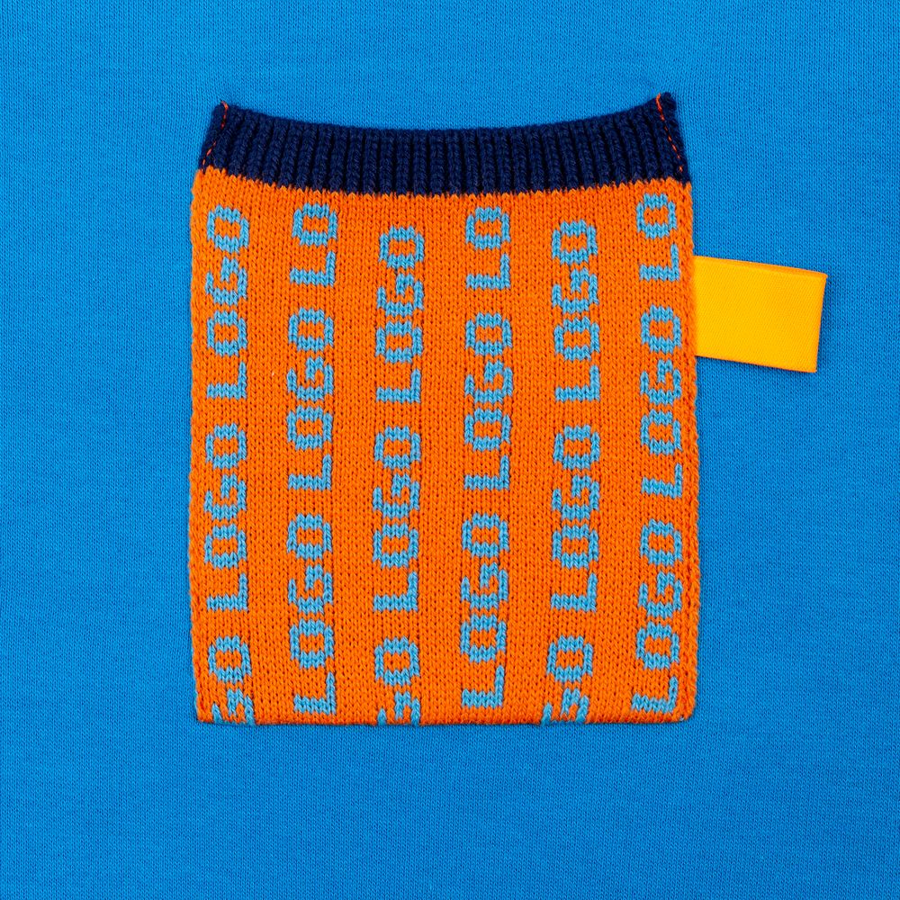 Вязаный карман с вывязанным логотипом или индивидуальным узором в фирменной цветовой гамме. Отправляя запрос, добавьте в заказ свитшоты в нужном количестве и укажите в поле «Примечание» формы заказа следующие данные: