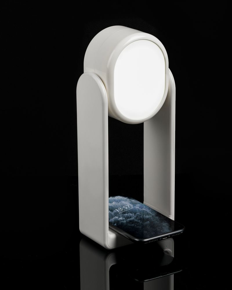 Лампа с колонкой и беспроводной зарядкой lampaTon, белая