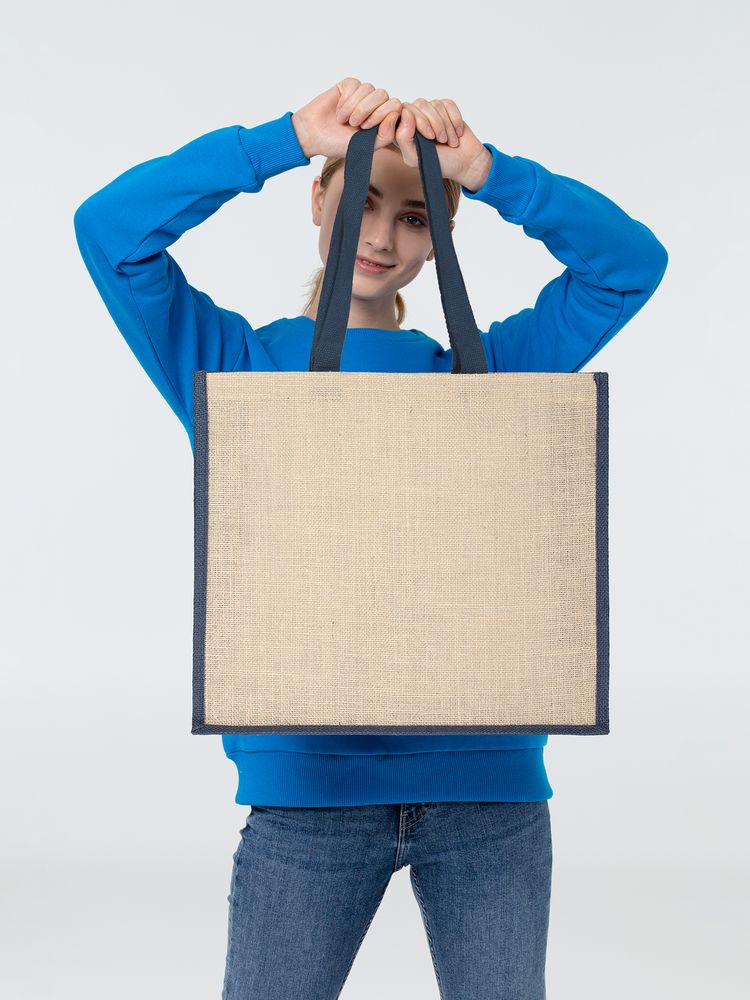 Холщовая сумка для покупок Bagari с синей отделкой