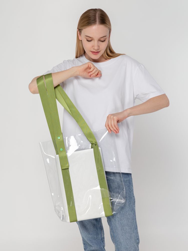 Шопер Clear Fest, прозрачный с зелеными ручками