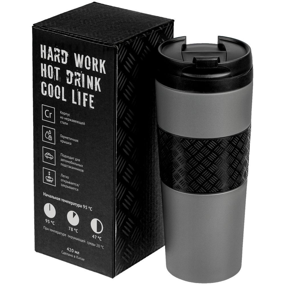 уточнить, как заказать Термостакан Hard Work, вакуумный, темно-серый (графит);