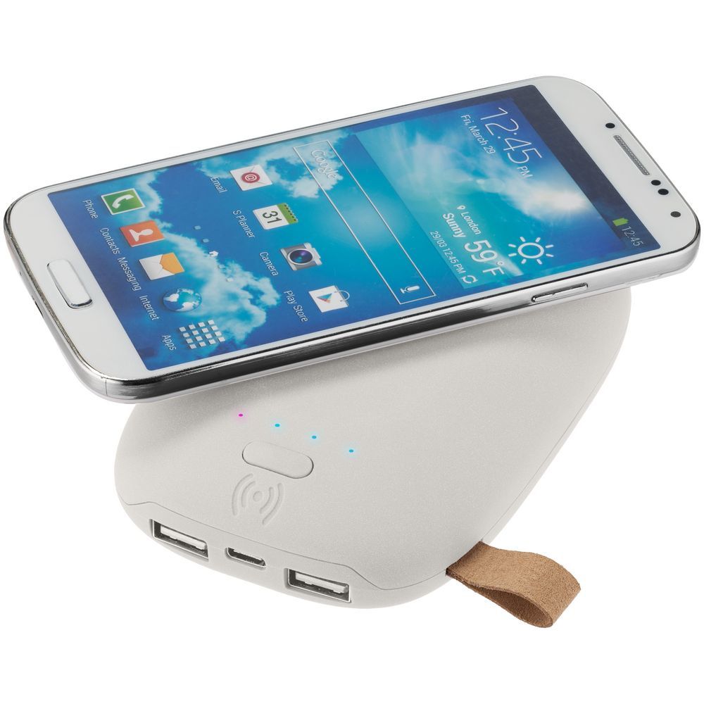 Нажмите кнопку на корпусе аккумулятора, чтобы запустить беспроводную зарядку — один из четырех индикаторов начнет медленно мигать красным цветом. Поместите смартфон на аккумулятор (на сторону с кнопкой), зарядка начнется и остановится автоматически при снятии смартфона с аккумулятора. Этой же кнопкой в некоторых случаях (заряд трекеров, браслетов, наушников и прочих устройств с очень малыми токами) рекомендуется запустить процесс заряда и при подключении аккумулятора к устройству через кабель (деактивировать систему энергосбережения).
